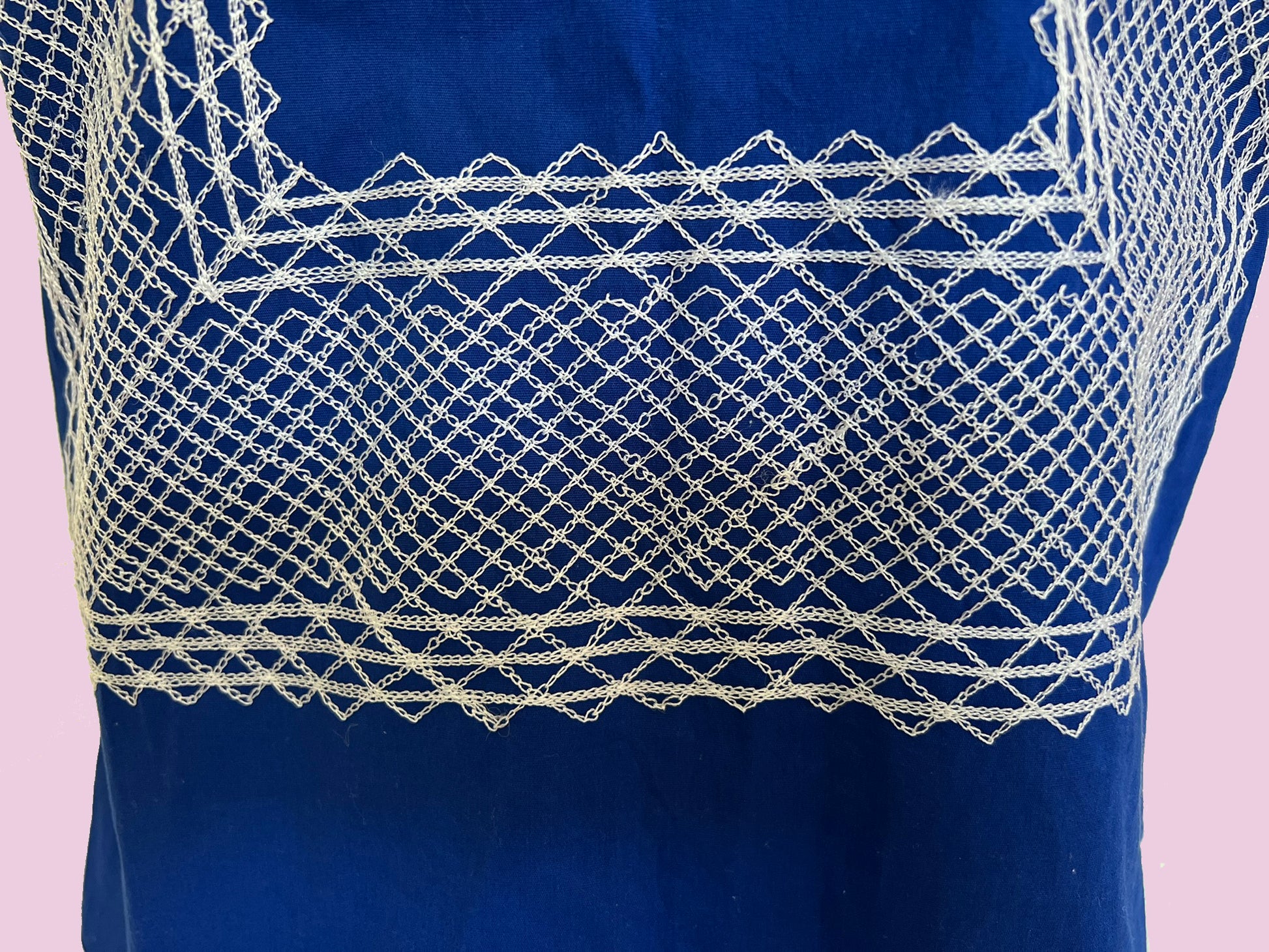 Esta encantadora blusa en azul, con un tejido tipo cadenilla en blanco, es una pieza que irradia elegancia y estilo. El contraste entre los dos colores crea un efecto visual cautivador, mientras que la artesanía en cada detalle muestra la destreza de manos expertas. Eleva tu estilo con esta prenda que refleja la belleza de la artesanía mexicana.