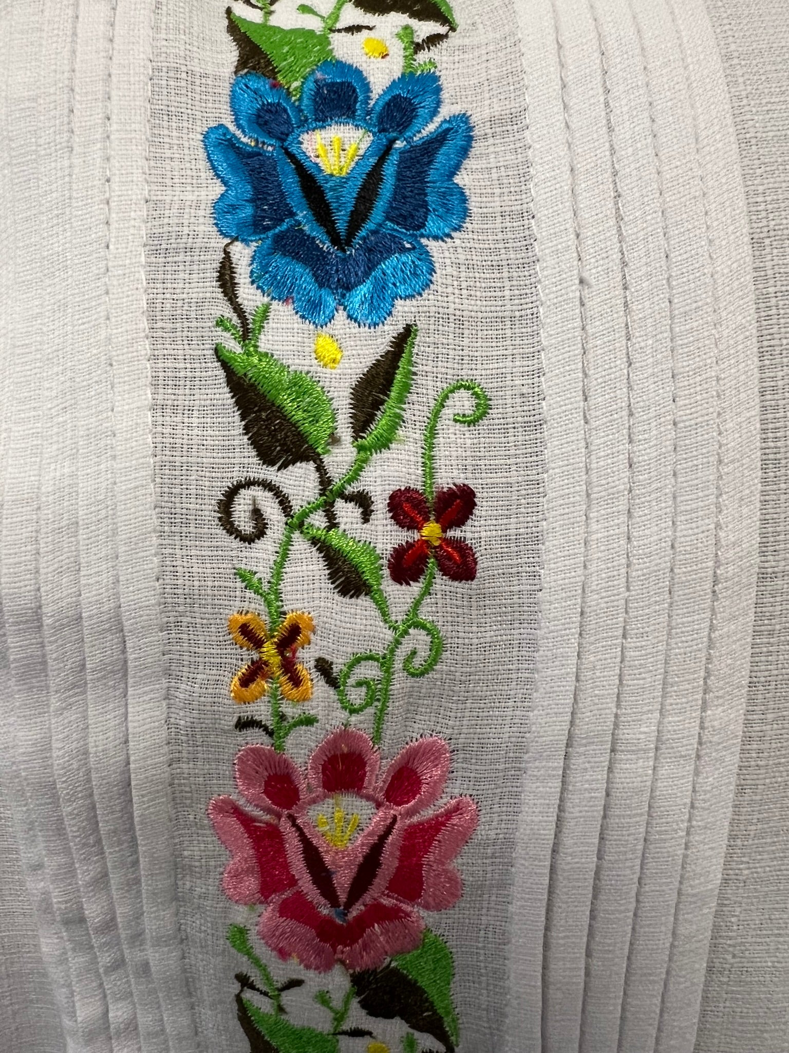 Sumérgete en la frescura y elegancia de nuestra guayabera de lino blanca. Esta prenda combina la ligereza y frescura del lino con la belleza de las flores bordadas a máquina. Cada detalle de esta guayabera refleja la pasión por la moda y la artesanía, creando una prenda que te mantendrá fresco y con estilo en cualquier ocasión. Celebra la autenticidad y la comodidad con esta pieza que es más que una prenda, es una declaración de elegancia.