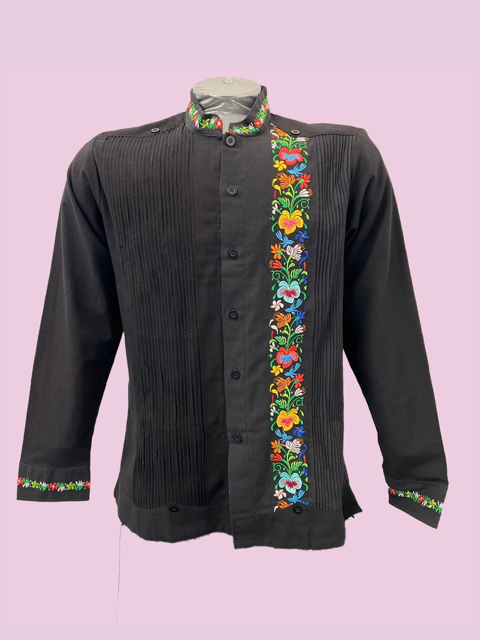 Descubre la sofisticación y frescura de nuestra guayabera en elegante color negro. Esta prenda, confeccionada en suave y fresco lino, combina comodidad y estilo de manera excepcional. Los vibrantes bordados a máquina en varios colores añaden un toque de alegría y autenticidad, celebrando la rica tradición de la guayabera. El cuello mao aporta un toque contemporáneo y elegante.